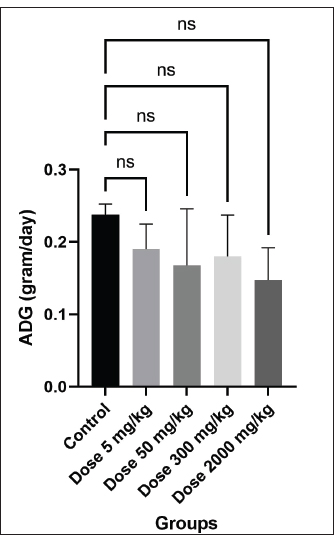 Fig. 1. The increase in weight for each treatment group and the control group (p > 0.05). ADG: Average Daily Gain.