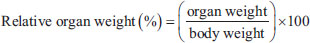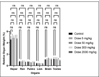 Fig. 2. The relative organ weight of all treatment groups and the control group (p > 0.05). Table 1. Clinical signs and behavioral observations of acute toxicity study of ethanolic extract Ocimum sanctum Linn. for control and treated groups.