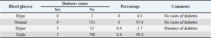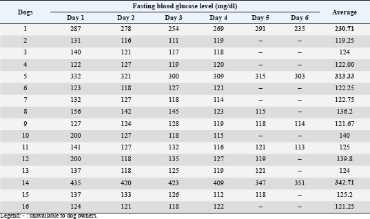 Fig. 7. Blood sugar status of the dogs. Table 3. Diabetic status of the dogs.
