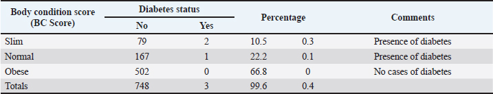 Table 5. Diabetic status of dogs according to the condition score.