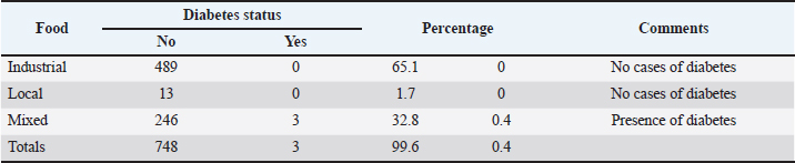 Table 8. Diabetic status of the dogs according to the food type.