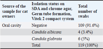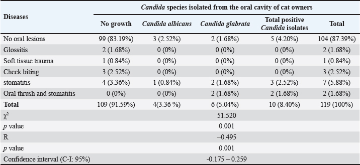 Table 4. Oral diseases associated with Candida infection among domestic cat owners.