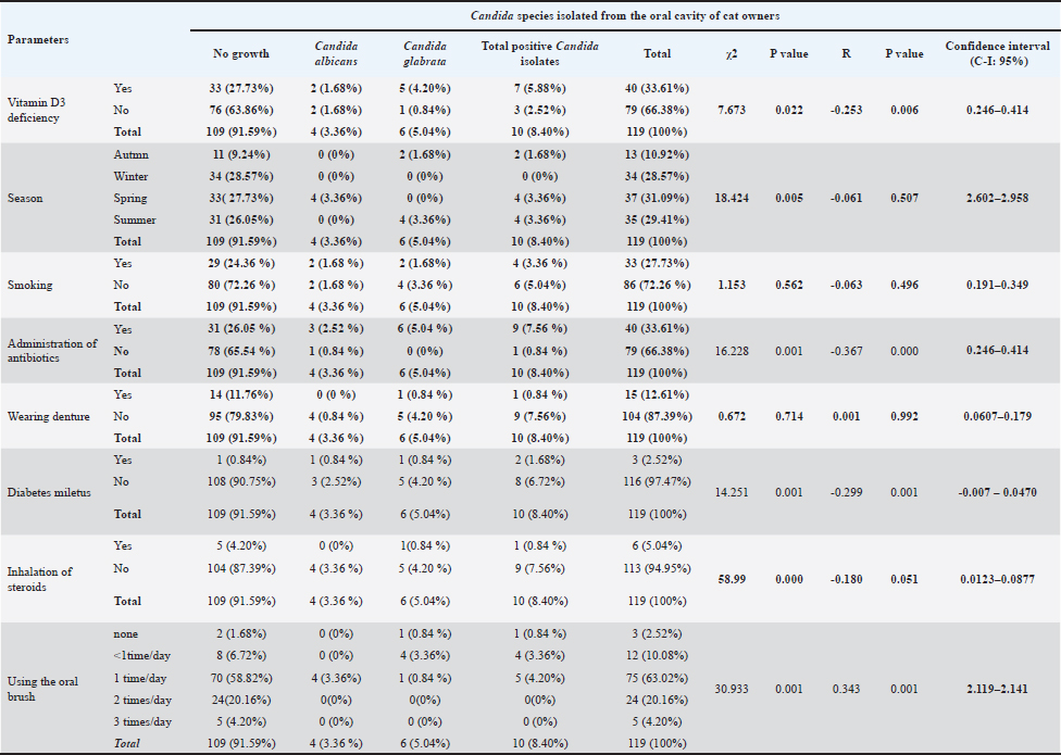 Table 3. Possible risk factors associated with Candida colonization among cat owners.