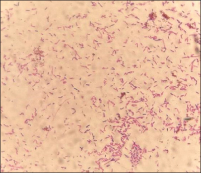 Fig. 4. Microscopical characteristics of R. planticola: short, straight, gram–negative rods arranged singly or in pairs under a light microscope (100×) Table 1. Biochemical results obtained using the VITEK® 2 system for R. planticola.