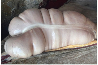Post-mortem examination resultsPost-mortem examinations of the dead horses infected with M. haemofelis revealed signs of overall emaciation in the affected animals, paleness of internal organs (Fig. 5), and prominent splenomegaly. The liver, kidneys were enlarged; however, the heart showed white patches. Moreover, histopathological changes were characterized by different histopathological changes of eosinophilic degeneration of cardiac muscle fibers, accompanied by atrophy in some fibers, with bleeding between fibers, besides atrophic glomeruli, accompanied with the dilatation of renal tubules in the kidneys, as well as marked reduction in the proportion of white pulp of splenic tissue and degenerative changes in the cytoplasm of hepatocytes, accompanied by nuclear alterations characterized by loss of chromatin content in the hepatic tissue (Figs. 6–9).