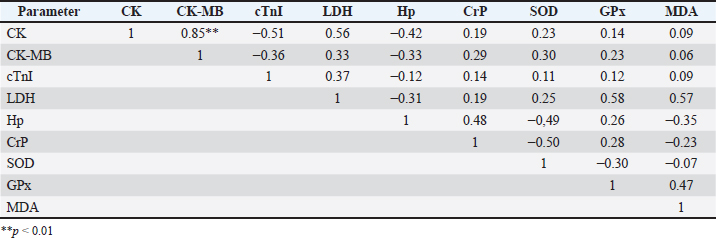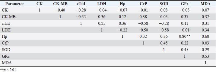 Table 3. The relationship between acute phase protein parameters, cardiac markers, and antioxidant enzymes during the recovery period.