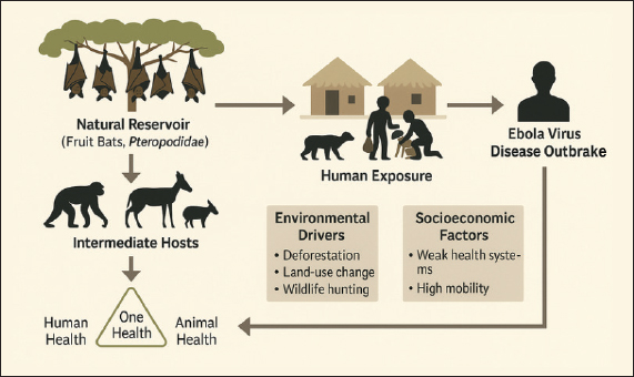 Open Vet. J.. 2026; 16(2): 768-787 Open Veterinary Journal, (2026), Vol. 16(2): 768-787 Review Article Ebola virus disease: A persistent challenge in global health securityMuniroh Muniroh1,2*, Luluk Hermawati3, Fathurrohim Fathurrohim4, Siti Darifah5, Lola Febriana Dewi6, Neshya Ruriana Putri7, Yessy Andriani Fauziah8, Eveline Yulia Darmadi8, Dwi Setianingtyas9, Aswin Rafif Khairullah10, Abdul Hadi Furqoni11 and Bima Putra Pratama121Graduate School Student, Universitas Islam Negeri (UIN) Syarif Hidayatullah Jakarta, South Tangerang, Indonesia 2Department of Clinical Pathology, Faculty of Medicine, Universitas Islam Negeri (UIN) Syarif Hidayatullah Jakarta, South Tangerang, Indonesia 3Department of Medical Biology, Faculty of Medicine and Health Sciences, Universitas Sultan Ageng Tirtayasa, Serang, Indonesia 4Department of Microbiology, Faculty of Medicine, Universitas Sriwijaya, Palembang, Indonesia 5Department of Community Medicine, Faculty of Medicine and Health Sciences, Universitas Sultan Ageng Tirtayasa, Serang, Indonesia 6Department of Oral Biology, Dentistry Study Program, Faculty of Medicine, Universitas Sriwijaya, Palembang, Indonesia 7Department of Clinical Pathology, Faculty of Medicine, Universitas Sultan Ageng Tirtaysa, Serang, Indonesia 8School of Dental Medicine, Universitas Ciputra, Surabaya, Indonesia 9Department of Oral Medicine, Faculty of Dentistry, Universitas Hang Tuah, Surabaya, Indonesia 10Research Center for Veterinary Science, National Research and Innovation Agency (BRIN), Bogor, Indonesia 11Center for Biomedical Research, National Research and Innovation Agency (BRIN), Bogor, Indonesia 12Research Center for Process Technology, National Research and Innovation Agency (BRIN), South Tangerang, Indonesia *Corresponding Author: Muniroh Muniroh. Universitas Islam Negeri (UIN) Syarif Hidayatullah Jakarta, South Tangerang, Indonesia. Email: muniroh.sps.uinjkt [at] gmail.com Submitted: 22/11/2025 Revised: 01/01/2026 Accepted: 09/01/2026 Published: 28/02/2026 © 2026 Open Veterinary Journal