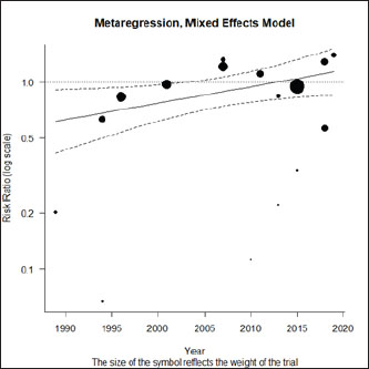 Fig. 4. Meta-regression using the covariate “year of publication.”