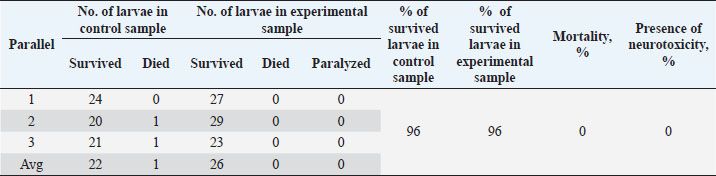 Table 6. Results of the analysis of the cytotoxic activity of the resulting substances (40%) 5 mg/ml.