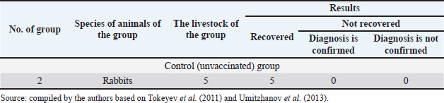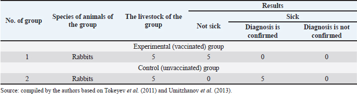 Table 5. Results of the study of therapeutic efficacy of inactivated vaccine against trichophytosis of farm animals.