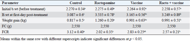 Table 5. The effect of ractopamine on intestinal characters in rabbits vaccinated with RHD virus vaccine (mean ± SE) (n=5).