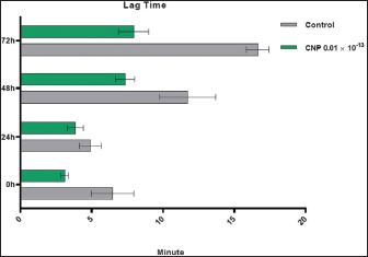 Fig. 4. CNP effect of Turbidimetric analysis of Lag time of ram sperms during three days of cooling preservation.