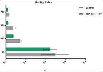 Fig. 5. CNP effect of Turbidimetric analysis of motility index of ram sperms during three days of cooling preservation.