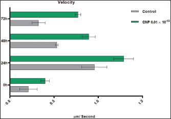 Fig. 6. CNP effect of Turbidimetric analysis of the velocity of ram sperms during three days of cooling preservation.