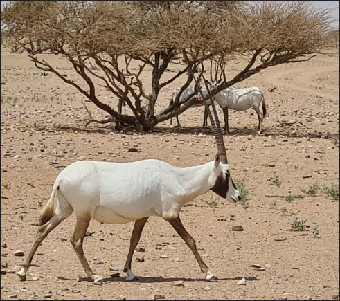 Fig. 2. Arabian oryx (Oryx leucoryx) at Al Wusta natural reserve. In 2021, the Sanctuary hosted 738 oryx. (Photo by M. Giangaspero).