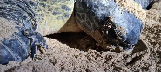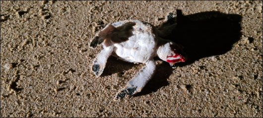 Fig. 9. Killed green turtle. Apart the destruction of entire nests by predators, mortality of juveniles is high and starts just after hatching. (Photo by M. Giangaspero).