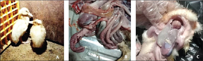 AbstractBackground: Bacterial infections causing digestive problems are among the most serious threats to Egypt's duck industry, owing to their effects on feed utilization and body weight gain. Aim: As a result, the goal of this study was to identify bacterial pathogens causing enteritis in ducks as well as testing their antimicrobials resistance capabilities. Methods: Forty-two duck flocks from different localities at four Egyptian Governorates (El-Sharkia, El-Gharbia, El-Dakahlia, and El-Qaliobia) have been subjected to clinical and postmortem examination as well as bacterial isolation and identification. The liver samples have been collected aseptically from freshly euthanized ducks for bacterial isolation followed by identification using conventional biochemical tests, VITEK 2 system, and confirmatory polymerase chain reaction (PCR) for detection of the uid A gene (beta-glucuronidase enzyme) of Escherichia coli. In addition, antimicrobial sensitivity testing for the isolates against different antimicrobials by the VITEK 2 system was used. Results: Forty-six positive bacterial isolates were identified using conventional methods and the VITEK 2 system including Staphylococcus spp. (52.17%), E. coli (41.30%), and 2.17% for each of Enterococcus casseli lavus, Salmonella enterica subspecies arizonae, and Enterobacter cloacae. PCR was positive for E. coli uid A gene at 556 bp. The antibiogram patterns of isolated pathogens from naturally infected ducks in our work demonstrated 87% multidrug resistance with varying results against different antimicrobial drugs tested. Such findings supported the fact of the upgrading multidrug resistance of Staphylococci and Enterobacteriacae. Conclusion: The most prevalent bacterial pathogens associated with duck enteritis were Staphylococcus spp. and E. coli with the first report of S. enterica subspecies arizonae causing duck enteritis in Egypt. Keywords: Duck enteritis, Staphylococci, Salmonella, E. coli, Antimicrobials. IntroductionBacterial infections in ducks have higher incidence rates compared with viral diseases. Mortality rates of bacterial infections have increased globally (Enany et al., 2018). The studies have concentrated on determining the intestinal load of pathogenic bacteria such as Staphylococci spp., Escherichia coli, and Salmonellae spp. (Cao et al., 2008). Ducks with bacterial infection experience diarrhea, lack of coordination, depression, dehydration, and a high mortality rate. In the poultry business, these illnesses result in great financial losses for various regions of the world (Brans and Gross, 1997). Staphylococci inhabit the skin and mucosal surface of the most critical organs of mammals and birds (El-Jakee et al., 2008). In poultry, it produces considerable economic losses in a variety of ways, including septicemia, lower body weight, decreased egg production, and osteomyelitis, which result in lameness and carcass condemnation at slaughter (McNamee and Smyth, 2000 and Andreasen, 2008). Escherichia coli infects ducks of all ages, causing septicemia with a death rate of 10%–50%. Young ducklings are more commonly affected, and mortality rates in birds aged 4–9 weeks can approach 20%. Colibacillosis is manifested either as a systemic or localized form. Pericarditis is commonly seen in colisepticemia. The pericardial sac becomes cloudy and the epicardium becomes edematous and covered with a light-colored exudate (Saif et al., 2010). Also, congested spleen, perihepatitis, airsacculitis, and enteritis have been recorded by Aggad et al. (2010). The localized form may be in the form of coliform omphalitis/yolk sac infection (Montagomery et al., 1999), coliform cellulitis (Gomis et al., 2000), swollen head syndrome (Van de Zande et al., 2001), diarrheal disease (Saif et al., 2010), or venereal colibacillosis (acute vaginitis) (Gerardian et al., 2000). Salmonellosis is a dangerous duck disease with clinical symptoms more common in very young ducklings and more prevalent in the immediate post-hatched period (Henry, 2000). The clinically affected ducklings showed depression, inappetence, huddling together, loss of weight, closed eyes, and a staggering gait appeared 72 hours post infection, which was followed by tremors, droopy wings, diarrhea, and feather pasting around the vent (Mondal et al., 2008). Ducklings with salmonellosis have postmortem findings that range from no grossly evident lesions to a septicemic picture with congestion of the internal organs, including the liver, spleen, lungs, and kidneys. Typhlitis, pericarditis, and perihepatitis are also frequently seen (Lister and Barrow, 2008). Discrete necrotic lesions in the lungs, liver, and heart may be observed. Birds that survive the acute septicemic phase of the infection may have peritonitis and hemorrhagic enteritis (Pattison et al., 2008). The VITEK 2 system is considered an efficient and dependable method for carrying out bacterial identification and testing for antibiotic susceptibility. The polymerase chain reaction (PCR) is a very sensitive technique for identifying different pathogens in clinical samples. Numerous PCR assays have been created to detect and identify bacterial pathogens in ducks (Gomis et al., 2003). Since most bacterial illnesses in duck flocks cannot be totally prevented by vaccination, antibiotics are often recommended as a control measure. In the poultry industry, improper usage of antibiotics results in higher rates of resistance, leading to the growth of multidrug-resistant bacteria and subsequently raises concern (Ammar et al., 2021). This study aims to identify the bacterial pathogens incriminated in the duck enteritis problem using conventional biochemical tests, VITEK 2 system as well as PCR. Furthermore, the study assesses the antibiotic sensitivity of the identified pathogens. Material and MethodsExamined birdsForty-two duck flocks from four Egyptian governorates (EL-Sharkia, El-Gharbia, El-Dakahlia, and El-Qaliobia) suffering from en