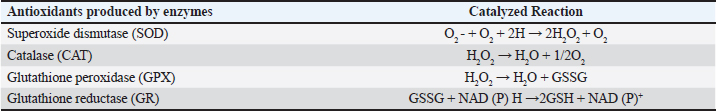 Fig. 3. Enzymatic and nonenzymatic classification of antioxidants. Table 4. Antioxidant defensive agents.