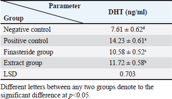 Table 4. Effect of flaxseed ethanolic extract, finasteride on level of DHT in serum