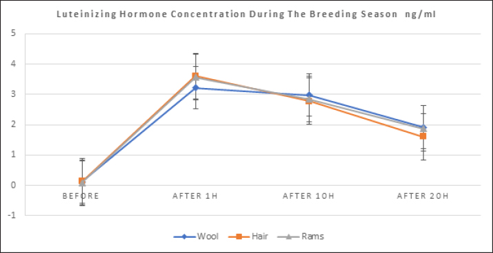 Fig. 1. Shows the rates of increase in LH among the experimental groups during the breeding season.