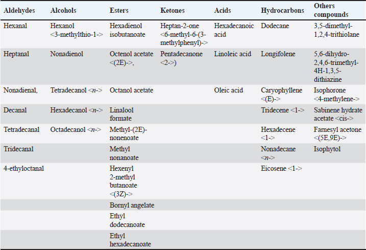 AbstractBackground: The efficiency and profitability of animal farming systems are closely linked to the reproductive success of livestock, which requires effective management through biological, hormonal, and nutritional strategies. The “male effect,” referring to the influence of male pheromones on female reproductive hormones, offers several benefits. This leads to improved reproductive management, better timing of breeding, and increased fertility rates. Additionally, using natural pheromones provides a non-invasive and sustainable method for managing reproduction, and it can be a cost-effective strategy, reducing the need for expensive hormonal treatments. Incorporating male pheromones into reproductive management practices can thus boost the efficiency and profitability of animal farming systems. Aim: The study’s objective is to examine the influence of pheromones, extracted from Awassi ram’s wool and Shami goat buck’s hair, on the secretion of luteinizing hormone (LH) and Progesterone (P4) in Awassi ewes during the breeding season. Methods: The pheromones were extracted using a soaking method with dichloromethane as the solvent. The resulting organic extract was then analyzed using a Chromatec-Crystal 5,000 gas chromatography-mass spectrometry device, equipped with a quadrupole mass spectrometer. The experiment was carried out on three equal groups, each consisting of 17 subjects, during the breeding season. In Group I, 15 ml of the ram’s wool extract was applied to a piece of gauze and placed in a specially designed mask that was attached directly to the nose. In the second group, a similar procedure was followed using 15 ml of the buck’s hair extract. The third group consisted of Awassi rams. The LH assay was conducted immediately before the treatment and again at 1, 10, and 20 hours post-treatment, and after 5 and 30 days of treatment to assess P4 levels. Results: The study found that pheromones from Awassi rams and Shami goat bucks significantly increased the levels of LH and P4 in female Awassi sheep. Conclusion: The study concludes that the pheromones extracted from the wool of rams and Shami goat bucks can stimulate the response of female Awassi sheep. This finding opens up the possibility of using these pheromones in the reproductive management of female Awassi sheep. Keywords: Awassi sheep, Shami goats, Pheromones, LH, Progesterone. IntroductionThe efficiency and profitability of animal farming systems depend on the reproductive success of livestock. Effective reproductive management involves a combination of biological, hormonal, and nutritional strategies, as well as the prevention of sexually transmitted diseases (Hashem and Gonzalez-Bulnes, 2021). Over time, techniques have been developed to enhance the reproductive efficiency of sheep, such as shortening the non-breeding season and synchronizing lambing periods to specific times of the year (Zarkawi, 2011). This synchronization allows for optimal care conditions, helping farmers distribute labor and feed resources effectively, and ensuring a steady supply of animal products like meat to the market (Godfrey et al., 1997). Various methods have been established to manage the reproduction of farm animals and improve their reproductive performance. Estrus induction and synchronization techniques generally fall into two main categories: hormonal (medical-pharmacological) methods and other key methods related to the care system, such as lighting systems and the male effect. However, hormonal therapies are expensive and have negative impacts such as immunogenic effects. Therefore, using non-invasive and natural methods is crucial for better outcomes. The male effect, recognized as a clean and ethical reproductive control method (Martin et al., 2004; Martin and Kadokawa, 2006), has been known since the 1940s (Ungerfeld et al., 2004). It involves exposing novel males to ewes, as documented by many researchers (Alvarez et al., 2009; Delgadillo et al., 2011). Introducing a sexually active male to a goat herd stimulates female reproductive activity (Avdi et al., 2004). This bio-sexual stimulus, enhanced by numerous male-female sensory contacts, can stimulate or synchronize female reproductive activity even during non-estrus periods, providing a more effective response when direct contact between the sexes occurs (Sampaio et al., 2012). This response primarily depends on ewe olfactory signals produced by male pheromones through androgen stimulation (Gelez and Fabre-Nys, 2004). Pheromones, complex organic molecules, transmit signals from one animal to another and are more specialized than odors, allowing detection in very small quantities. They are secreted by special glands located in specific areas of the animal’s body (such as feet), affecting the receiving individual through their central nervous system and causing behavioral and endocrine changes (Rekwot et al., 2001). After females detect the male’s presence, signals are sent to the central nucleus of the amygdala. This will transfer the signal to the hypothalamus, the origin of gonadotropin-releasing hormone (GnRH) pulses, resulting in a changed pulse frequency of luteinizing hormone (LH) secretion, raising the number of pulses to 2–3 times (Chemineau et al., 1986). Awassi sheep, a prevalent breed in Syria and the Middle East, exhibit seasonal breeding patterns characterized by multiple estrus cycles (Zarkawi et al., 1999). Considering the economic situation in these areas, meeting the growing demand for affordable animal protein is crucial. Sheep are a key source of animal protein and play an essential role in food security. To boost sheep productivity, it is important to enhance reproductive efficiency by developing and implementing new methods focused on increasing productivity. Breeding-based methods are more cost-effective than traditional hormonal approaches, and reproductive traits in sheep can be improved through genetic selection and better breed
