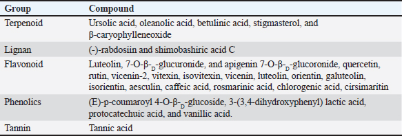 Fig. 2. The OS structure. OS is a perennial plant with a medium stature and a woody base. OS grows to a height of 30–60 cm on a standing-up, multibranched stem with hairy, subquadrangular stems. The oval-shaped, green leaves are narrowed at both ends. The petioles are 1.5–3 cm long and very slender. The petals are clustered into bracteate clusters that are 15–20 cm long on little stems.