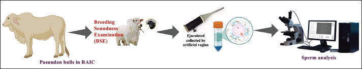Artificial insemination (AI) represents a widely adopted strategy for enhancing the Pasundan bull population. The primary goal of AI is to enhance the genetic quality of the herd by using superior bulls to produce high-quality offspring (Iskandar et al., 2023). The success of AI is largely dependent on the quality of frozen semen, which plays a critical role in fertilization, embryonic development, and pregnancy outcomes (Hasbi et al., 2024). Semen quality is influenced by various factors, including diet, season, temperature, and genetic predispositions (Indriastuti et al., 2020). Individual breeding factors, which refer to genetic elements, can affect semen quality across different livestock species, including sheep (Hodge et al., 2022), ducks (Zhang et al., 2023), horses (Wilson et al., 2019), and bulls (Indriastuti et al., 2020). One effect of individual variation is that bulls older than 10 years can continue to be used for breeding, as long as their semen quality and reproductive performance remain at a satisfactory level and meet established standards (Heraini et al., 2023).