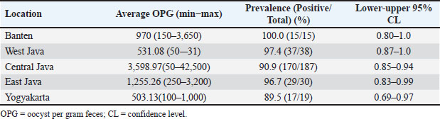 Table 2. Univariate analysis of the risk factors associated with Eimeria infection in goats from Java Island.