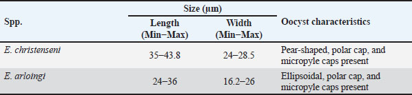 Table 3. Morphological characteristics of Eimeria oocysts obtained from goat feces in this study.