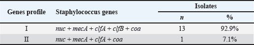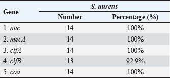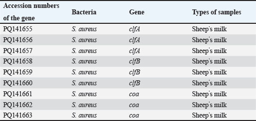 Table 5. The NCBI GenBank accession numbers for the clfA, clfB, and coa genes of S. aureus sequences in sheep’ s milk.