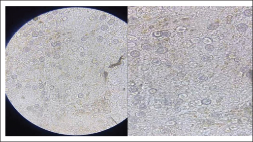 Fig. 1. Non-sporulated oocyst: 40×.