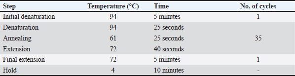 Table 2. PCR Program for the amplification of the ITS-1sSequence.