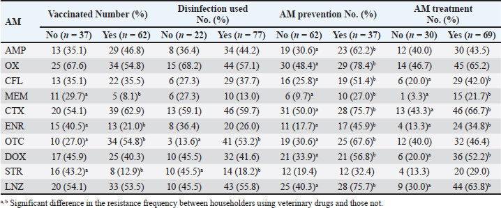 Table 4. Effects of veterinary drug usage on antimicrobial resistance in S. aureus strains (n=99).