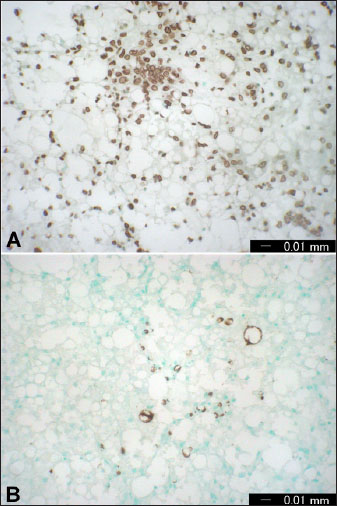 Fig. 2. Immunohistochemical examinations by liver staining of ssDNA (A) and caspase-3 (B) in cows with FL. Numerous ssDNA- and caspase-3-positive cells were detected. Subacute rumen acidosisAcute rumen acidosis is the result of excessive consumption of carbohydrate-rich foods. The overfeeding syndrome usually follows, and it may result in acute rumen acidosis and lead to death (Reed et al., 1995). Ruminal acidosis is therefore considered a bovine disorder that influences dairy animals and feedlot cattle. It can be represented in various forms, extending from per-acute form to chronic long-standing illness, which is difficult to recognize. Sub-acute rumen acidosis (SARA), on the other side, is one of the most critical metabolic disorders in the dairy industry that impairs animal health and performance even in well-managed and high-yielding dairy animals. SARA has complex and diverse consequences that may include depression of feed intake, reduction in diet digestibility, feed intake inconstancy, reduction in milk production and fat percentage, lameness, hepatic abscesses, and increasing veterinary care costs (Abdela, 2016). Sub-acute rumen acidosis is often manifested as a herd problem with general signs, disturbed digestion, depressed ruminal motility, reduced feed intake, decreased milk production, and reduced fat% causing wasting in high-producing animals. SARA, also known as chronic acidosis, is a well-established gastrointestinal disorder found principally in modern dairy herds (Selim and Tharwat, 2006; Enemark, 2008; Gao and Oba, 2014). Feeding on a diet relatively deficient in long fiber or a large proportion of concentrated feed may result in acidosis in dairy animals (Goff, 2006). Thus, the continuous ingestion of excessive quantities of concentrates with low levels of well-structured fibrous ration over a prolonged period is the principal cause of SARA (Morgante et al., 2007; Plaizier et al., 2008). The propagation of SARA is not well known; a study came from the U.S. revealed a prevalence of 19% in early lactating cattle and 26% in animals deep into lactation (Garrett et al., 1997).