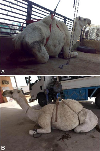 Fig. 9. Clinical presentation of a downer camel that was admitted for examination of lateral recumbency.