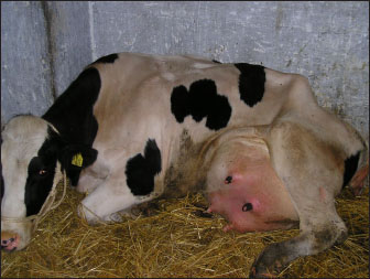 Fig. 7. Third stage or lateral recumbency phase in a due to hypocalcemia in a cow.