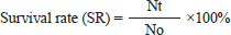 where: PB =bacterial population (CFU/ml). K =number of colonies. A =inoculum volume in diluent (ml). B =dilution factor at which the colonies are counted. C =inoculum volume transferred to the agar medium (ml). The survival rate of the catfish was assessed at the conclusion of the experiment using the following formula (Bera et al., 2020):
