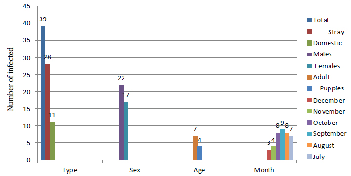 Table 4. Infection rate of canine Neosporosis as recognized per month.