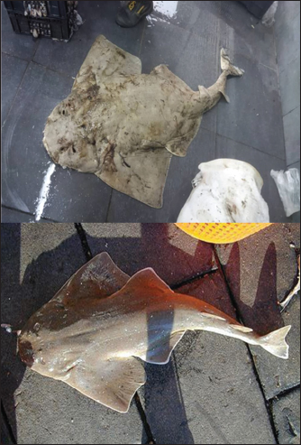 Fig. 4. Some common Angel sharks were photographed by fishers in Tripoli waters. Morphometric dataMorphometric measurements were obtained from seven Angel shark specimens captured in Tripoli waters, including S. squatina (n=3), S. aculeata (n=1), and S. oculata (n=3) (Table 1).