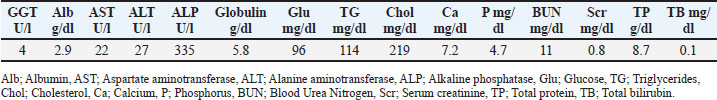 Fig. 4. Gross images after the surgical procedure showing good healing and at least tissue damage. Widespread antibiotics (Cefazolin 20 mg.kg-1 q24 hours) and analgesics (Tramadol 2 mg.kg-1) were administered to prevent infection and control pain management. Sections of the mass reveal a well-circumscribed region composed of sheets of round to polygonal histiocytic cells. The cells exhibit moderate amounts of pale eosinophilic cytoplasm and centrally to eccentrically located round to oval nuclei with finely stippled chromatin and indistinct nucleoli. A mild to moderate infiltrate of small lymphocytes is often observed at the periphery of the lesion (Fig. 5).