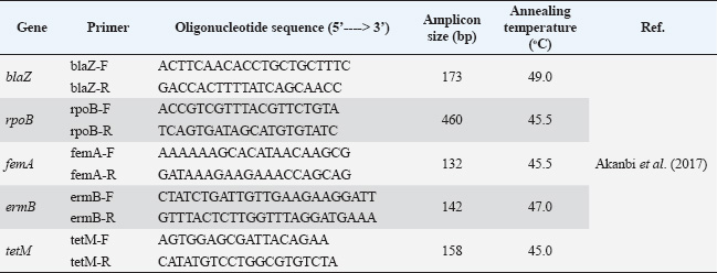 Table 6. Antimicrobial resistance genes prevalence among the S. aureus isolates (n=48).
