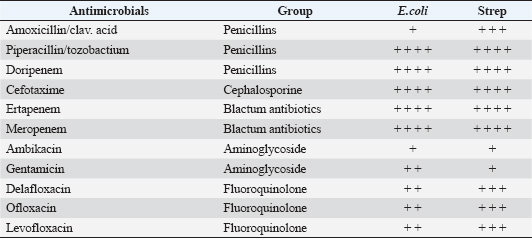 Table 2. Susceptibility of isolates to certain antimicrobials.
