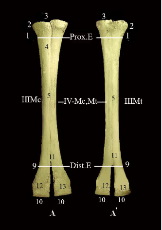 Fig. 1. (A) Dorsal view of the metacarpus, (Aʹ) Metatarsus of male.