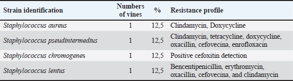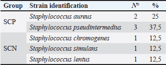 Table 2. Frequency of Staphylococcus spp. strains according to species and antimicrobial resistance.
