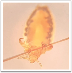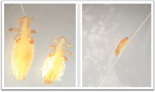 Fig. 3. Male, female (Left), and egg (Right) lice of Linognathus africanus.