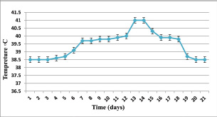 Fig. 2. Relationship between time (days) and temperature (°C) during T. annulata infection.