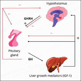 Fig. 2. Schematic of the relationship between IGF-1 and GH and the hypothalamic axis. The presence of estrogen and gonadotropins in cows enhances the role of IGF-1 in ovarian follicle cells in stimulating receptor cells in GCs (Baumgarten et al., 2017). IGF-1 receptor expression is elevated in tiny antral follicles. Furthermore, IGF-1 also contributes to the stimulation of granulosa cell proliferation and differentiation depending on the stage of follicle development (Zhu et al., 2022). It promotes the proliferation of granulosa cells from small follicles (diameter 1–3 mm) and stimulates the secretion of progesterone by granulosa cells from large follicle cells (diameter > 5 mm), but not in small follicles (Monniaux et al., 1994). IGF-1 has both autocrine and paracrine functions, mechanistically promoting mitogenic activity in proliferating tissue, such as the development of the corpus luteum from ovarian follicles (Zhou et al., 2021). IGF-1 stimulates the release of reproductive hormones and inhibits IGFBP activity, causing the ovaries to release more steroids. This shows that IGF-I can affect the hormone production of gonadotropin-dependent dominant follicles (Ipsa et al., 2019). According to Hull and Harvey (2014), IGF-1 promotes GC differentiation and proliferation in humans, pigs, rats, and sheep. It also promotes steroidogenesis in theca cells. Meanwhile, Lin et al. (2003) used stem cell line culture and evidence to show that IGF-1/IGFBP-1 boosted the number and development of blastocysts. Barrera et al. (2023) noted that IGF-1 and insulin can both inhibit apoptosis and accelerate blastocyst growth. Based on previous studies, it has been proposed that IGF-1 and sex steroids produced in liver and cumulus cell cultures play a role in supporting oocyte maturation and embryo development; however, their direct effect on IVF success remains a theoretical concept that requires further experimental validation (Velazquez et al., 2008; Silva et al., 2009; Li et al., 2014; Zhao et al., 2020; Turathum et al., 2021; Yang et al., 2022). According to Drummond (2006), steroids and growth factors are crucial in controlling ovarian follicle development. The first two distinctions are seen in cattle, where robust dominant follicles are better able to produce insulin-like growth factor and estradiol than subordinate follicles, which subsequently suffer from atresia (Fortune et al., 2001). IGF-1 and estradiol increase the proliferation of granulosa cells in vitro and maintain their survival by enhancing apoptosis resistance (Mani et al., 2010). Furthermore, IGF-1 and estradiol can strengthen the cell development cycle by increasing apoptosis resistance (Kasprzak and Szaflarski, 2020). According to Velazquez et al. (2009), IGF-1 is also crucial for follicle development, oocyte maturation, embryo viability, and apoptosis reduction in bovine embryos. According to Makarevich and Markkula (2002), IGF-1 is a mitogenic and anti-apoptotic chemical that can promote cell proliferation in oocyte maturation, production, and in vitro embryo culture. Liver cell culture techniques for IGF-1 productionHepatocytes predominantly synthesize liver-derived IGF-1 under the regulation of GH, making hepatocyte cultures a promising model for studying and potentially harvesting IGF-1 in vitro. Several key methodological considerations must be addressed to ensure hepatocyte viability, functionality, and sustained IGF-1 secretion. Hepatocyte isolation and culturePrimary hepatocytes can be isolated from rodent, bovine, or human liver tissue using a two-step collagenase perfusion technique (Green et al., 2017). This method preserves cell membrane integrity and maximizes post-isolation viability. Hepatocytes are typically seeded in monolayer cultures on collagen-coated surfaces once isolated, which mimic the native extracellular matrix and support attachment and polarity (LeCluyse et al., 2012). While monolayer systems are widely used due to their simplicity and accessibility, they often suffer from rapid dedifferentiation, which impairs IGF-1 synthesis (LeRoith et al., 2021). Supplementation with hormones (e.g., dexamethasone), growth factors (e.g., epidermal growth factor), and physiological concentrations of insulin is recommended to maintain hepatocyte-specific gene expression and metabolic function. Culture media and dietary supplementsThe choice of culture medium significantly influences IGF-1 production. Williams’ E medium and Dulbecco’s Modified Eagle Medium supplemented with fetal bovine serum, insulin, transferrin, selenium, and glucocorticoids (e.g., hydrocortisone or dexamethasone) are commonly used. Glucocorticoids enhance hepatocyte differentiation and stimulate GH receptor expression, which indirectly promotes IGF-1 synthesis (Kisiday et al., 2005). Serum-free systems are increasingly favored for controlled IGF-1 quantification and downstream applications. In such systems, defined supplements must be optimized to balance cell survival with functional activity (Miescher et al., 2023). Dynamics of IGF-1 secretionIn vitro IGF-1 secretion by hepatocytes is time- and density-dependent. Peak levels are usually observed within the first 24–48 hours post-seeding and gradually decline due to cell stress and dedifferentiation (Yakar et al., 2002). Therefore, IGF-1 production is often transient unless culture conditions are optimized to extend the hepatic phenotype. Enzyme-linked immunosorbent assay and qPCR targeting IGF1 mRNA are routinely employed to assess IGF-1 production (Wacharasindhu et al., 2002). These methods also help monitor the effect of experimental treatments (e.g., GH supplementation) on IGF-1 expression. Comparative analysis of IGF-1 production methodsSeveral methods have been explored for IGF-1 production to support its application in biomedical and reproductive biotechnology, including bovine IVF. Recombinant protein expression and liver-derived IGF-1 via hepatocyte culture are the two primary approac