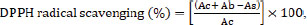 where Ac: absorbance of the control, Ab: absorbance of the blank, and As: absorbance of the sample. A lower absorbance indicated higher DPPH radical-scavenging activity. The experiments were performed in triplicate (Zourgui et al., 2020; Ben Lataief et al., 2021). Nitric oxide (NO) radical-scavenging assayThe NO scavenging activity was evaluated using the method described by Jagetia and Baliga (2004). Under aerobic conditions, NO was generated from sodium nitroprusside (10 mM in 0.5 M phosphate buffer, pH 7.4), and the nitrate ion concentration was determined using Griess reagent. Briefly, 250 µl of each sample at varying concentrations was mixed with 250 µl of sodium nitroprusside and incubated at 25°C for 140 minutes. Subsequently, 150 µl of Griess reagent (1% sulfanilamide, 1% N-(1-naphthyl) ethylene diamine dihydrochloride, and 2.5% phosphoric acid) was added to 150 µl of the incubated mixture. After 30 minutes, the absorbance was measured at 546 nm, and the NO scavenging activity was calculated using the following formula: