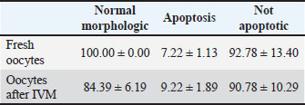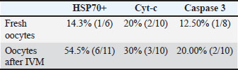 Table 2. Expression of HSP70+, Cyt-c, and Caspase 3 in fresh oocytes (before) and after in vitro maturation.