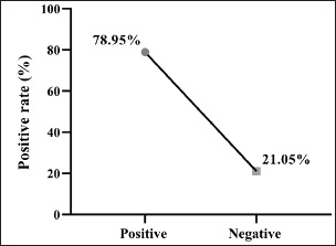 Fig. 1. Prevalence rate of colibacillosis using traditional diagnostics (total number of examined fecal samples=127).